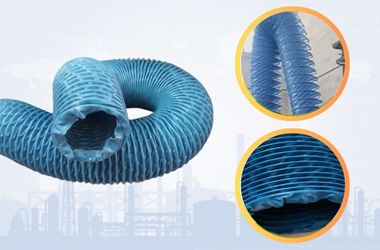 ท่อผ้าใบเคลือบ PVC สีฟ้าผลิตจาก ผ้าใบทาร์โพลีนเคลือบ PVC คุณภาพสูง เสริมโครงด้วย ขดลวดสปริงโลหะภายใน ทำให้โครงสร้างมีความแข็งแรงและยืดหยุ่นในเวลาเดียวกัน สามารถปรับเส้นทางลมและโค้งงอได้ง่ายโดยไม่เสียรูปทรง จุดเด่นสำคัญคือ ทนต่ออุณหภูมิได้ตั้งแต่ -20°C ถึง 120°C เหมาะสำหรับงานที่ต้องการส่งลมร้อน ลมเย็น หรือระบายอากาศทั่วไปในโรงงาน อาคารพาณิชย์ และงานก่อสร้าง ผิวเคลือบ PVC ยังช่วยให้ท่อ ทนน้ำ ความชื้น ฝุ่น และสารเคมีบางชนิด จึงเหมาะกับการใช้งานในสภาพแวดล้อมที่หลากหลาย