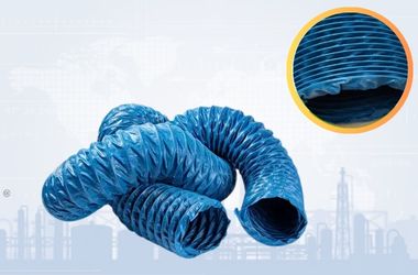 ท่ออ่อนส่งลมที่ผลิตจาก ผ้าใบเคลือบ PVC เสริมความแข็งแรงด้วยเส้นใยไฟเบอร์และขดลวดสปริงเหล็กภายใน ทำให้โครงสร้างท่อมีความยืดหยุ่นสูง สามารถดัดโค้งได้ตามต้องการ แต่ยังคงรูปทรงไม่ยุบตัวง่าย เหมาะสำหรับงานระบบส่งลมและดูดลมในหลายอุตสาหกรรม สีฟ้าโดดเด่น : มองเห็นง่ายในพื้นที่ทำงาน