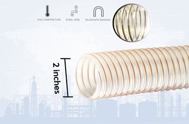 ท่อลมดูด-ส่งโพลียูริเทน ด้านการใช้งาน ท่อชนิดนี้เหมาะกับอุตสาหกรรมอาหารและยา (สำหรับรุ่นเกรดอาหารที่ผ่านมาตรฐานที่เกี่ยวข้อง), งานก่อสร้างและโรงผสมวัสดุ (ดูดฝุ่นซีเมนต์/ทราย), ระบบดูดควัน-ละอองน้ำมันในงานซ่อมบำรุงเครื่องจักร รวมถึงงานลำเลียงผง/เม็ดผ่านแรงดูดของโบลเวอร์หรือดักส์เตอร์ ความโปร่งใสทำให้ฝ่าย QC ตรวจสอบความสะอาดได้ง่าย ส่วนความยืดหยุ่นและรัศมีดัดเล็กช่วยติดตั้งในพื้นที่คับแคบรอบเครื่องจักรได้คล่องตัว (งานควัน/ไอร้อนต้องใช้งานภายใต้อุณหภูมิไม่เกิน 120 °C และไม่ควรรับไอเสียจากปลายท่อไอรถโดยตรง)