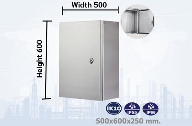 ตู้สแตนเลสประตูเดียวขนาด 500x600x250 มม. เป็นตู้ควบคุมไฟฟ้าหรือจัดเก็บอุปกรณ์อิเล็กทรอนิกส์ที่ออกแบบให้มีความแข็งแรงและทนทาน ผลิตจากสแตนเลสเกรด 304 หรือ 316L ซึ่งทนต่อการกัดกร่อน สนิม และสภาพแวดล้อมที่รุนแรงได้ดี เหมาะสำหรับใช้งานทั้งภายในและภายนอกอาคาร