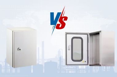 ตู้สแตนเลสกระจก 2 ชั้น ประตูตู้ชั้นในทำหน้าที่เป็น ฝาทึบสำหรับเข้าถึงอุปกรณ์ ขณะที่ประตูชั้นนอกเป็นกระจกใส ช่วยให้ผู้ใช้งานสามารถ ตรวจสอบสถานะเบรกเกอร์ รีเลย์ หรืออุปกรณ์ควบคุม ได้อย่างสะดวก โดยไม่ต้องเปิดตู้ ลดความเสี่ยงจากการสัมผัสไฟฟ้าและฝุ่นละออง ซีลยางรอบประตู เพื่อป้องกันน้ำและฝุ่นตามมาตรฐาน IP55–IP66 ทำให้มั่นใจได้ว่าอุปกรณ์ไฟฟ้าภายในจะปลอดภัยจากฝน ละอองน้ำ และฝุ่นละออง วัสดุสแตนเลสยังช่วยให้ตู้ทนต่อแรงกระแทกและสภาพแวดล้อมที่รุนแรง